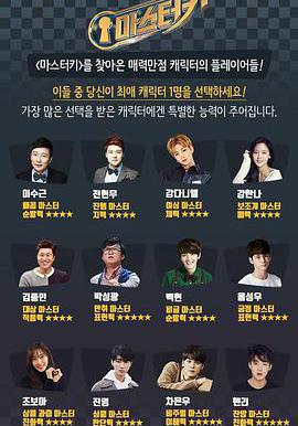 简介: SBS新概念综艺正式公开了节目的最终出演阵容,12名"玩家"分别为李寿根、全炫茂、姜丹尼尔、姜汉娜、金钟民、朴成光、边伯贤、邕圣祐、赵宝儿、郑振永、车银优、HenryLau刘宪华,并于韩国时间22日晚8时开始了第一轮投票.据悉节目将以找出12名玩家中握有"Master Key"的人为主要模式,是一档展现孤独心理战并挑战多项游戏任务的新概念综艺.另外节目将于9月末进行首次拍摄,10月14日正式开播。